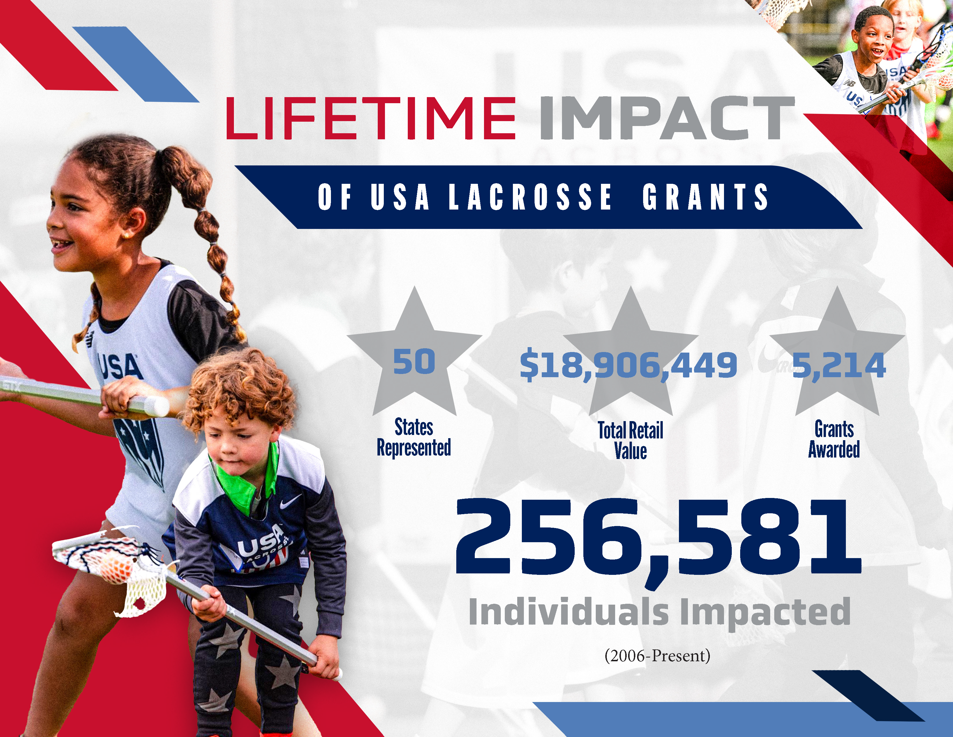 The USA Lacrosse National Grant Program aims to reduce barriers, increase inclusivity, and fuel growth in communities throughout the country by awarding equipment, financial support, and educational opportunities to organizations, schools, coaches, and officials.